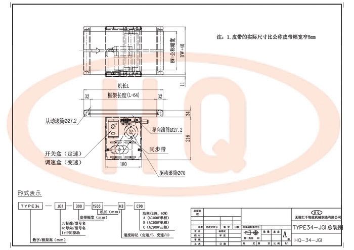 產(chǎn)品型號(hào): Type34-JI(常用型) Type34-JGI(糾偏皮帶型) 接縫皮帶輸送機(jī)