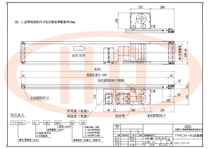 使用34mm鋁合金型材支架,皮帶傳送、驅(qū)動。輸送機(jī)兩端使用R7的滾筒,方便與其他輸送機(jī)對接,使物品輸送比較順暢,接縫處可以搬送長40mm以上的物品。驅(qū)動部為鑄鋁一體成型,主動輪和從動輪為鋁同步輪,皮帶為樹脂同步帶,具有精度高、靜音性及耐久性,無油脂污染。