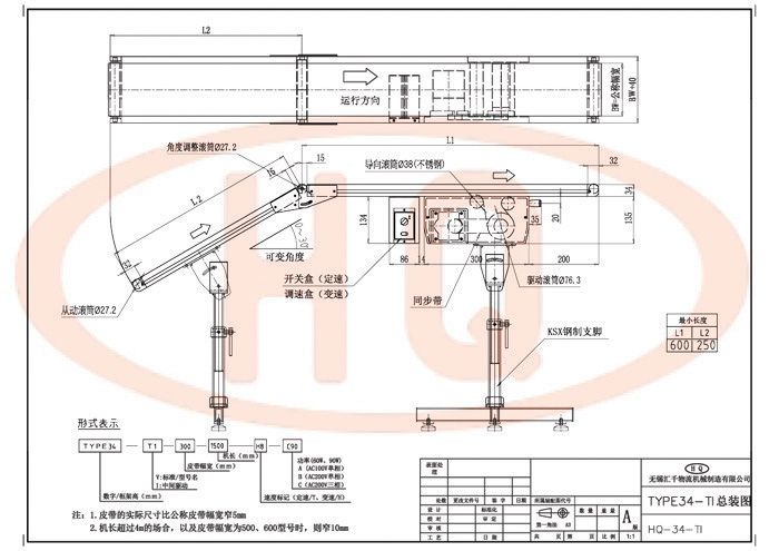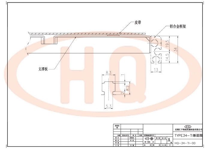 使用34mm鋁合金型材支架,皮帶傳送、驅動。