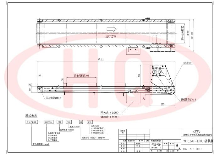 產品型號: Type60-DII頭部(或上部)驅動帶擋板皮帶輸送機