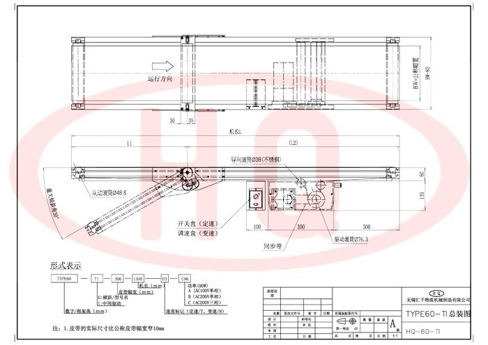 使用60mm鋁合金型材支架,皮帶傳送、驅動。