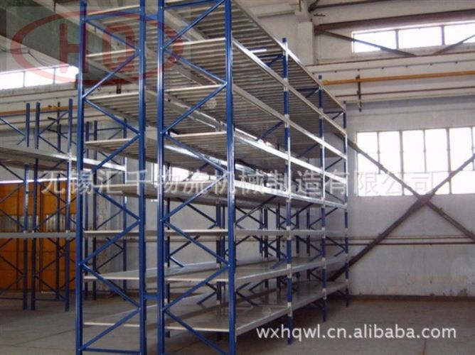 擱板式貨架通常均為人工存取貨方式,組裝式結構,層間距為50mm均勻可調,貨物也常為散件或不是很重的已包裝物品(便于人工存取),貨架高度通常在2.5m以下,否則人工難以觸及(如輔以登高車則可設置在3m左右)。單元貨架跨度(即長度)不宜過長,單元貨架深度(即寬度)不宜過深,按其單元貨架每層的載重量可分為輕、中、重型擱板式貨架,層板主要為鋼層板、木層板兩種。擱板式貨架適合存放零散、輕便的貨物,可以改裝成閣樓式貨架。為了滿足物品更多的存放需求,擱板式貨架還可以配置重梁的支撐(柱),可設計成多層樓層(通常2-3層),配有樓梯、扶手和貨物提升電梯等,這就演變成了閣樓式貨架,特別適用于汽配、電子器件的等企業系列產品的分類保存,承載不大于500kg/㎡。