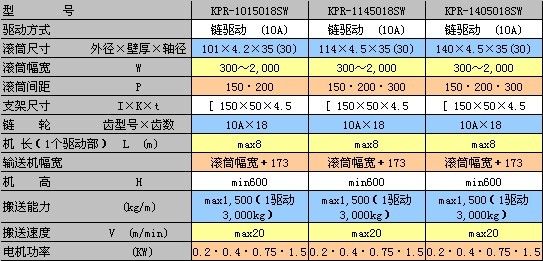 KPR-SW系列驅(qū)動輸送機使用雙排鏈條驅(qū)動,使用大強度的滾筒,適用于搬運大重量物品場合。