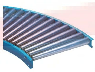 90° curved flexible conveyor is made up with tapered rollers,with big bend radius,suitable for turning joint situation .
